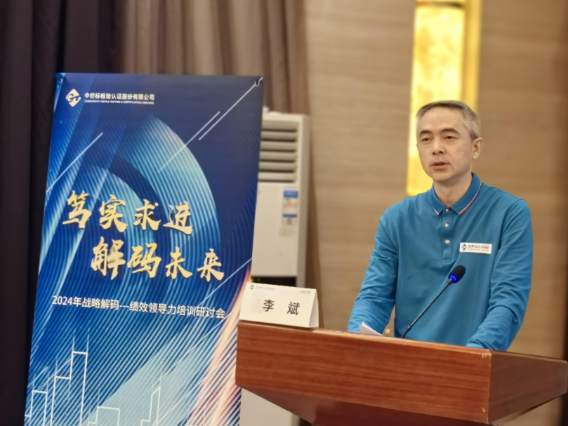 2023年12月9日至10日,通用技術中紡標檢驗認證股份有限公司(以下簡稱“中紡標”)2024年戰略解碼-績效領導力培訓研討會成功舉辦。培訓會聚焦公司戰略解碼、績效落地進行培訓與研討,對事關企業長遠發展的系列問題進行深入研討,旨在凝聚戰略共識、強化責任擔當,直面問題和挑戰,以敢于突破敢于創新的精神強有力地推動中紡標“十四五”規劃落地實施。中紡標總經理李斌作開班致辭和結業講話。