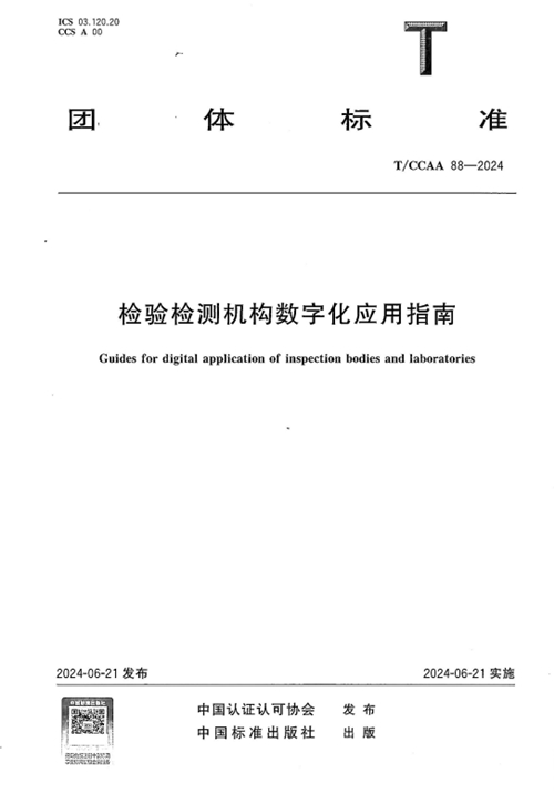 近日,由中國認證認可協會歸口,通用技術中紡標檢驗認證股份有限公司(以下簡稱“中紡標”或“公司”)等參與制定的團體標準T/CCAA 88—2024《檢驗檢測機構數字化應用指南》正式出版。該標準旨在指導檢驗檢測機構利用數字技術,將各要素、各環節進行數字化改造,推動檢驗檢測業務流程、服務方式重組變革,優化組織資源,提高管理效率,全面提升管理水平和競爭力。