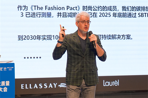 歌力思集團首席可持續時尚官Dominique Simard司馬德明在《可持續發展與ESG:高端時裝品牌集團的實踐與啟示》的報告中,分別從減少碳排放、倡導循環經濟、保護生物多樣性三大可持續發展議題,向參會嘉賓展示企業綠色發展成果。