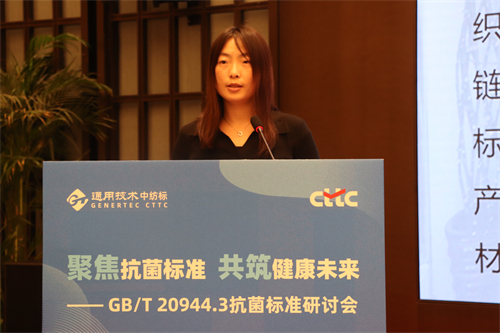 中紡標內設全國紡織標準與耗材中心,負責試驗用耗材及標準樣品的咨詢、研發及供應工作。先后承擔了十多項國家標準樣品和團體標準樣品的研復制工作。中紡標標準耗材部李賢雯在《抗菌標準樣品項目介紹》推介中,詳細介紹了由中紡標主導研制的“測定紡織品抗菌性能用控制織物標準樣品”的研制流程、技術要求、樣品制備、樣品檢驗等內容,為紡織品抗菌檢測提供標準標樣。