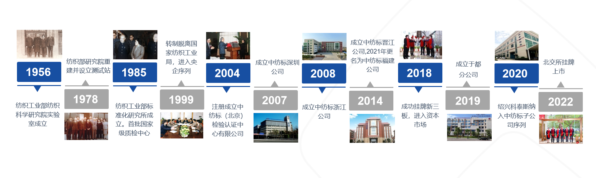 中紡標檢驗認證股份有限公司(證券簡稱:中紡標,證券代碼:873122,英文縮寫CTTC)由中國紡織科學研究院有限公司于2004年出資組建,是集標準、檢驗、檢測、計量、認證五位一體的綜合性技術服務機構,可為紡織服裝企業提供全方位、全產業鏈質量解決方案。主要業務包括紡織標準研究和制修訂、紡織及輕工產品檢驗檢測和認證、試驗用耗材研發及經營、儀器校準等。